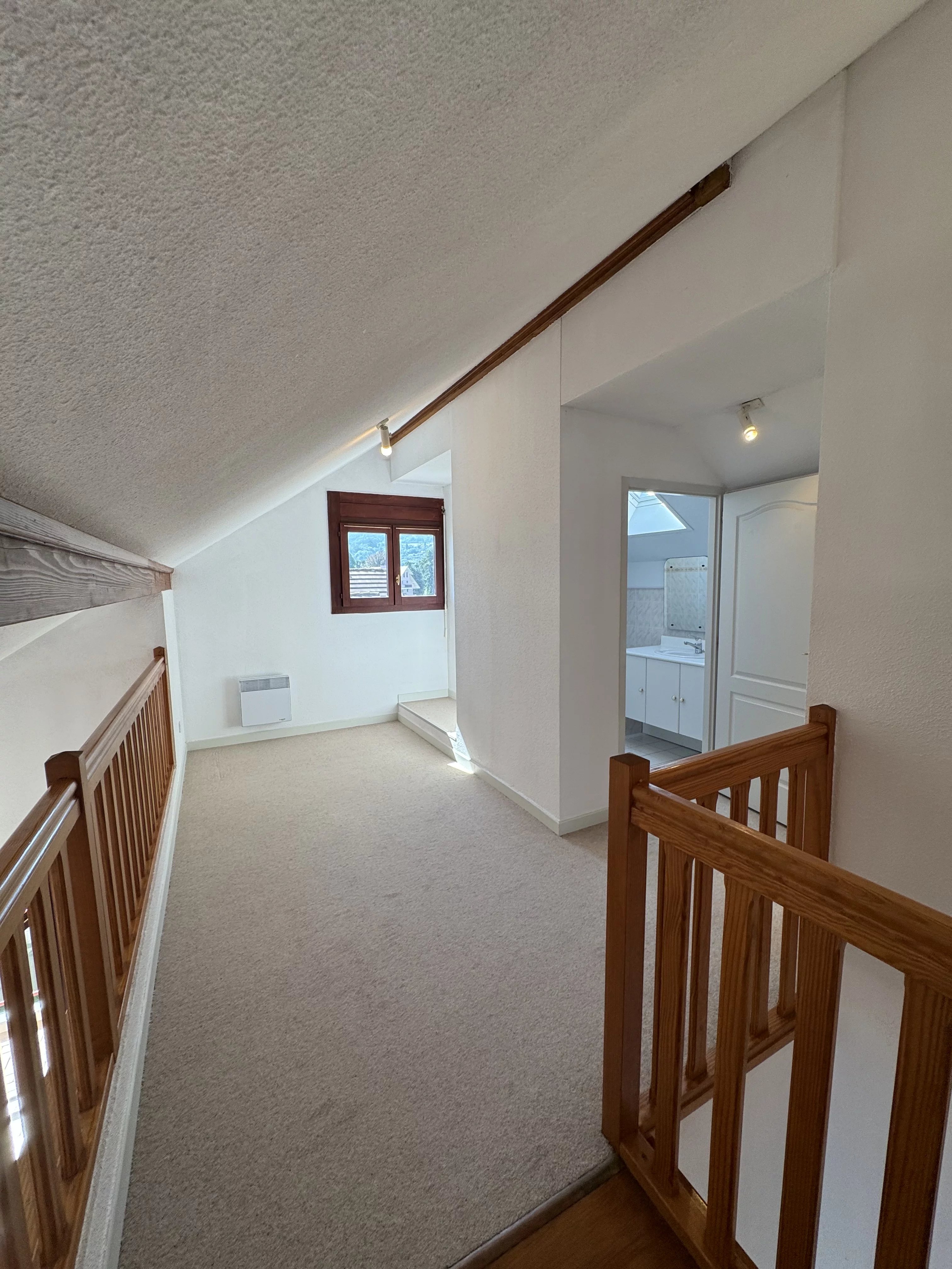 Au 2ème étage du bâtiment A d'une copropriété bien entretenue du Parc des Cèdres à Amphion, très bel appartement de type 4 pièces de 95 m2 répartis sur deux niveaux :